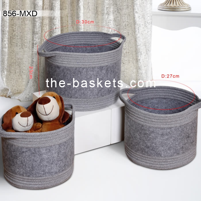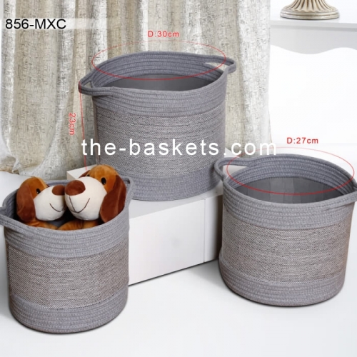 Cotton rope and fabric basket with handle
