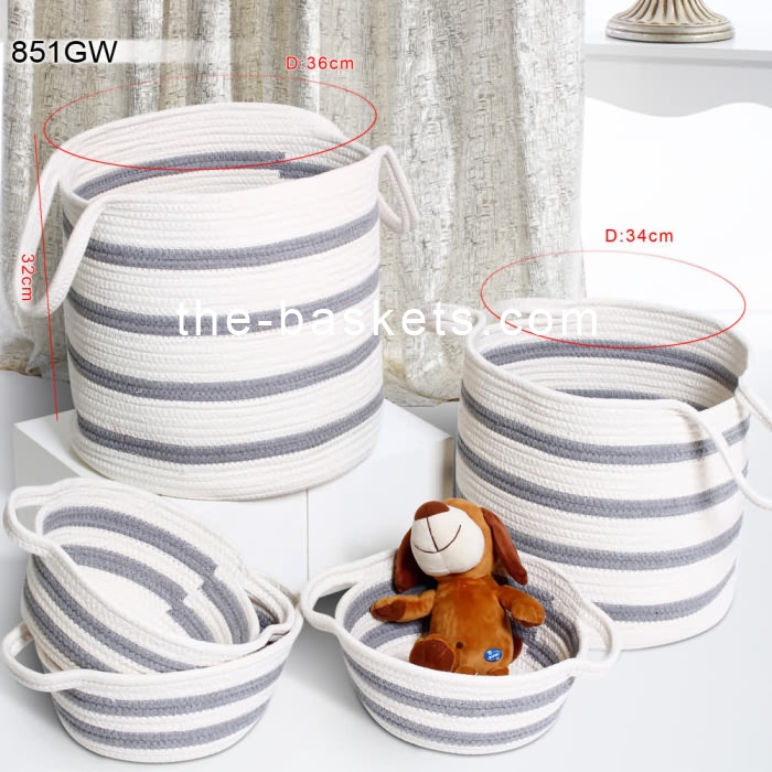 Cotton rope round basket with handle