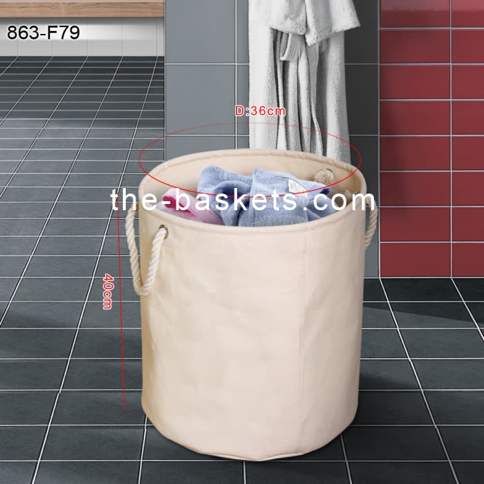 Fabric foldable round laundry basket with cotton rope handle