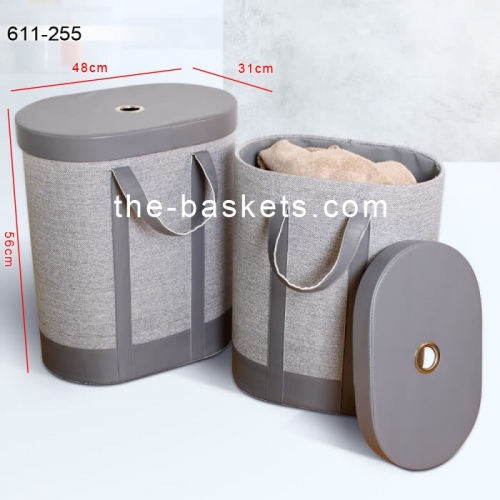Faux leather oval hamper