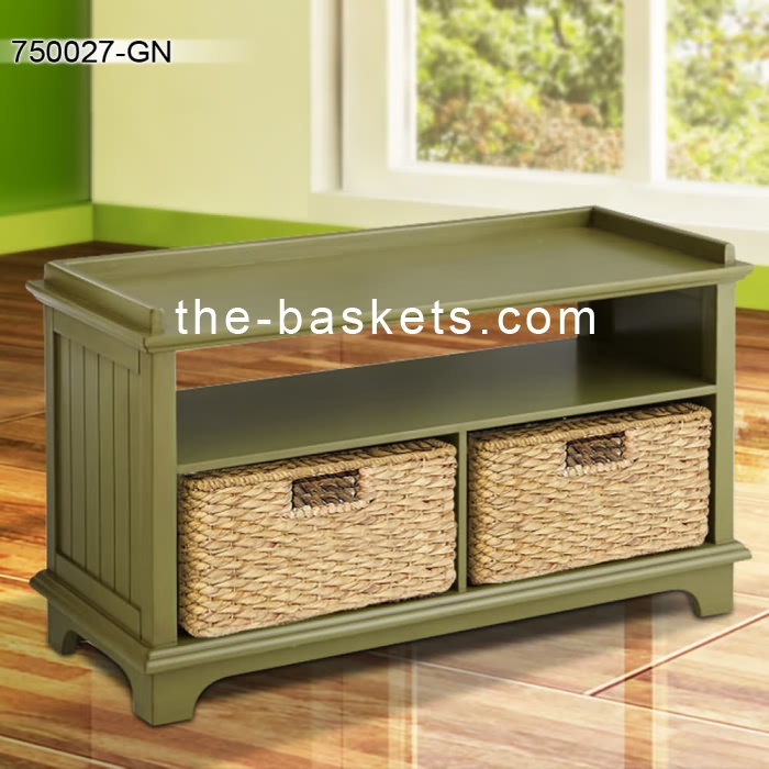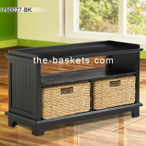 Long bench with two storage baskets