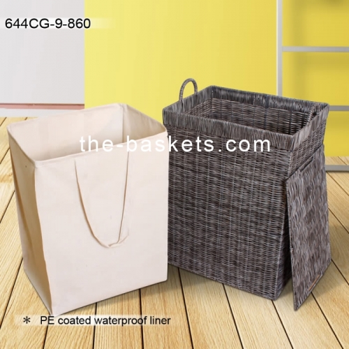 Resin wicker hamper with water resistant liner