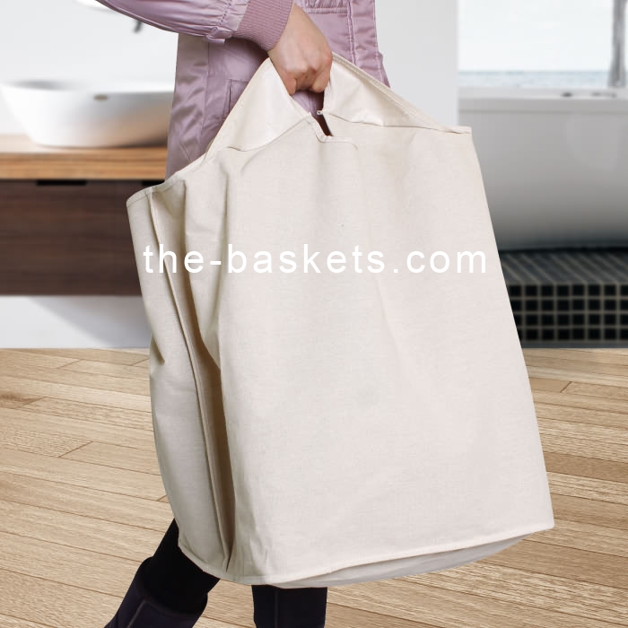 Laundry bag can be quickly taken off or put on the bamboo frame.