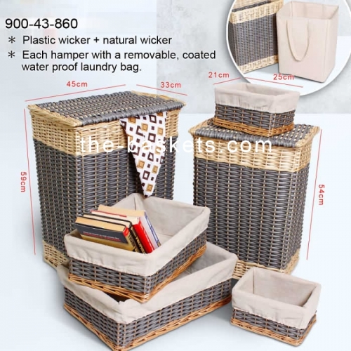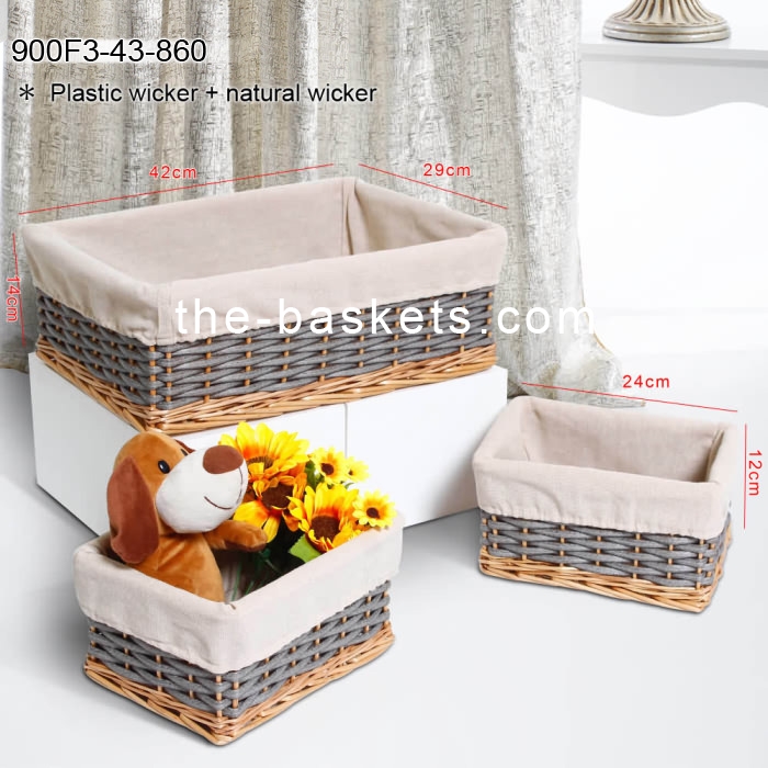 Willow & resin wicker storage basket with liner