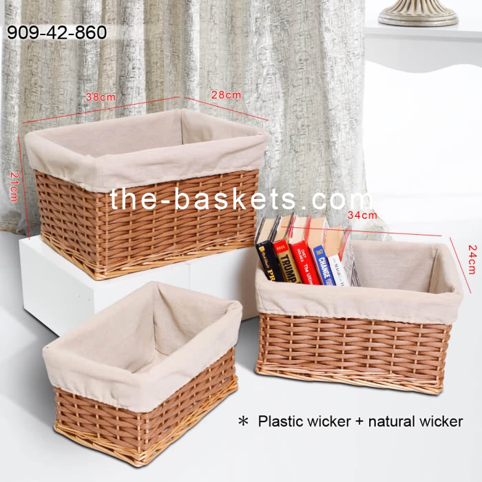 Willow & resin wicker storage basket with liner