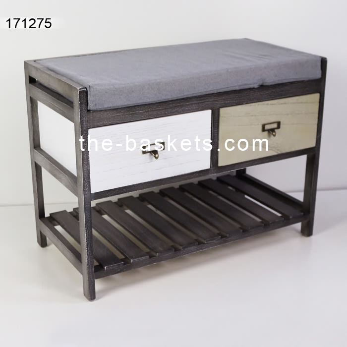 Wood cabinet with drawer and a foam-rubber cushion